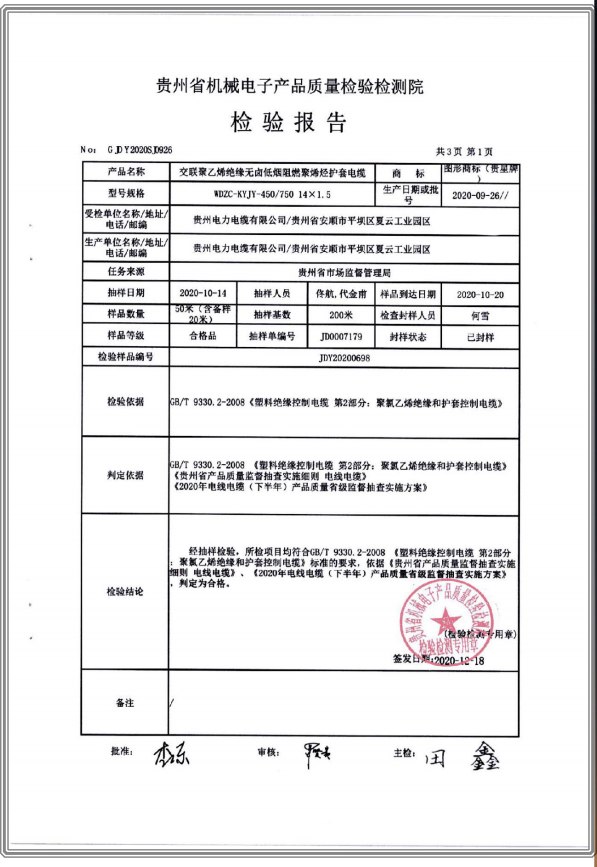 上一篇:鋁芯交聯(lián)聚乙烯絕緣聚烯烴護(hù)套無鹵低煙阻燃A類電力電纜 檢驗(yàn)檢測(cè)報(bào)告